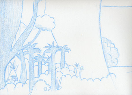 ラフスケッチです。画用紙でなくコピー用紙に落書きした感じなので、勿論本編で使えるものではないです。