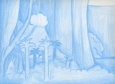 写真2で水色のみを使って陰影を付けていきます。よりイメージを確かなものにしていきます。
