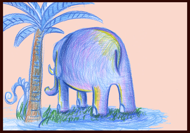 王が最後に願うと、王の目の前に一頭の可愛らしい小さな象がいました。